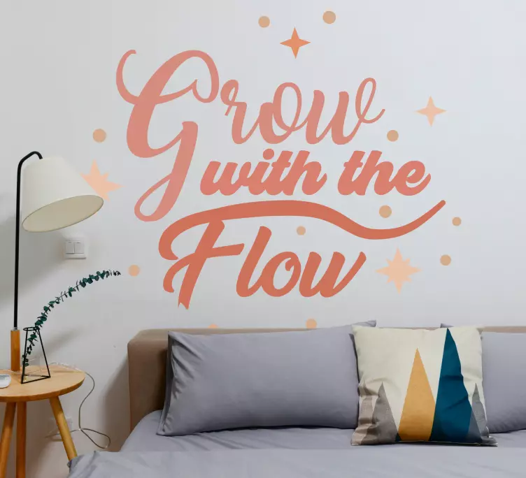 Referência: A48436Enfatizando o crescimento pessoal, esta peça combina tipografia elegante com encantadores motivos de estrelas. A frase incentiva a adaptabilidade e a positividade, tornando-a perfeita para um espaço de vida sereno. O texto flui graciosamente, convidando à reflexão e à inspiração para todos que a veem.