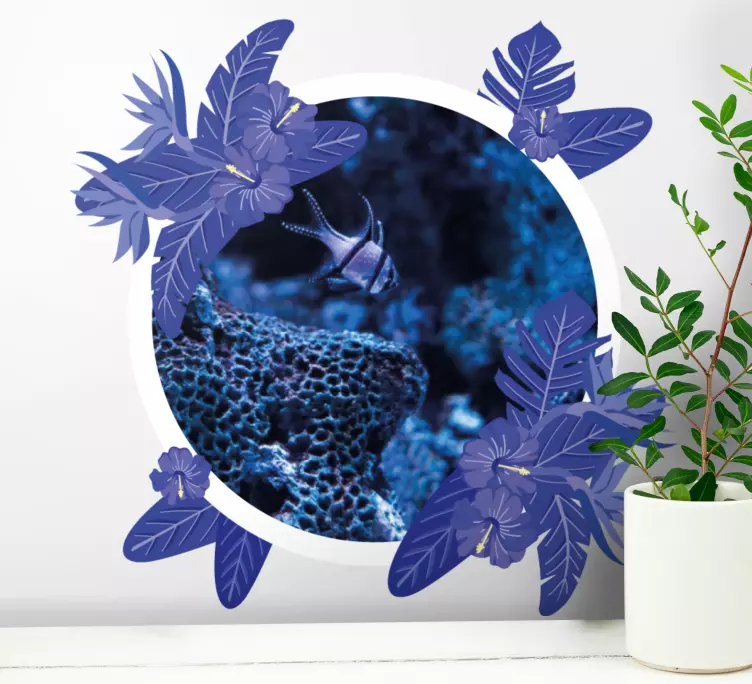 Transforma o teu espaço com o Autocolante animal cena de exploração subaquática, um design gráfico encantador que traz à vida a beleza do oceano. Com elementos florais vibrantes, folhas tropicais e a majestade dos corais, este autocolante apresenta uma palete de azuis que evoca a serenidade do mar. Cada detalhe, desde os peixes coloridos até ao quadro personalizado, é pensado para te transportar a um mundo subaquático fascinante!