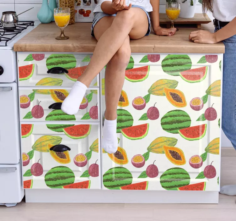 Descobre o Autocolante animal criação de motivo frutal, um produto com um design gráfico vibrante e alegre! Com elementos como melancias, mamão e limão, este autocolante apresenta uma estética tropical e colorida que transforma qualquer espaço. A sua aparência padronizada é perfeita para dar vida ao mobiliário e criar um ambiente divertido e acolhedor.