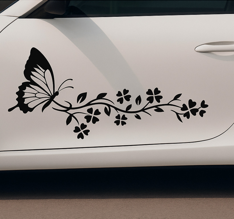 Referência: A54613Um design delicado apresenta uma borboleta graciosamente pousada em uma videira fluente adornada com flores. Este padrão intrincado simboliza transformação e beleza, evocando uma sensação da elegância da natureza. Adequado para realçar a estética de um carro, traz um toque de arte à vida cotidiana.