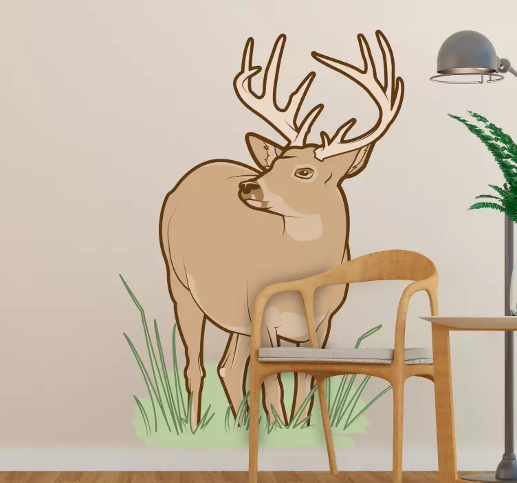 Descobre o Autocolante animal design de silhueta de cervo, uma peça gráfica que traz a beleza da natureza para dentro de casa! Com uma ilustração vibrante de um cervo rodeado por relva, este autocolante transporta a essência dos animais selvagens e do ar livre, tornando cada espaço mais acolhedor e inspirador!