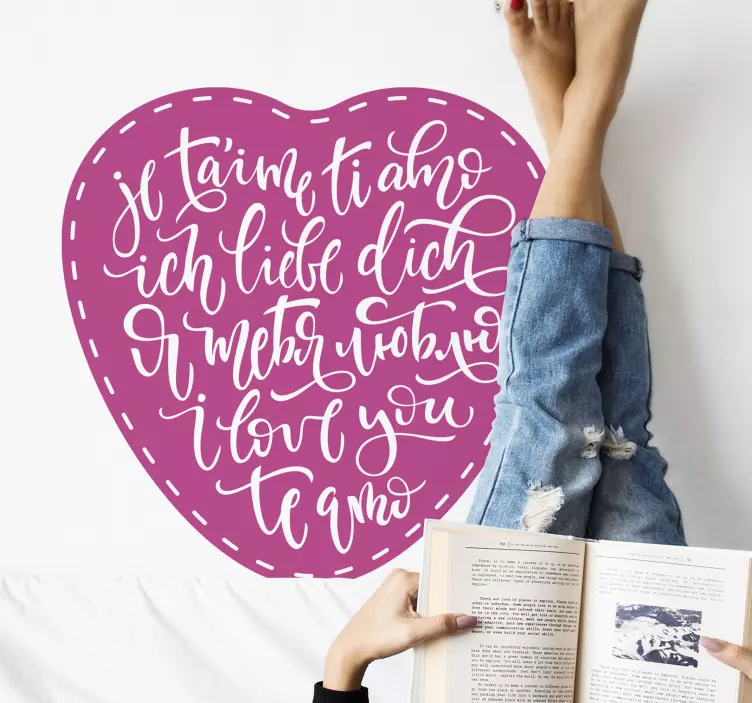 Referência: A47659As expressões de amor em várias línguas preenchem este design em forma de coração com calor e sentimento. A elegante caligrafia exibe frases de diferentes idiomas, celebrando a afeição de uma maneira visualmente atraente que embeleza qualquer espaço de vida.