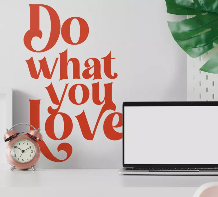 Referência: A48393Um design monocromático marcante com uma citação inspiradora que encoraja a busca pelas paixões. Ideal para espaços pessoais ou ambientes de trabalho, essa tipografia elegante serve como um lembrete motivacional, enfatizando a importância de "loving what you do".