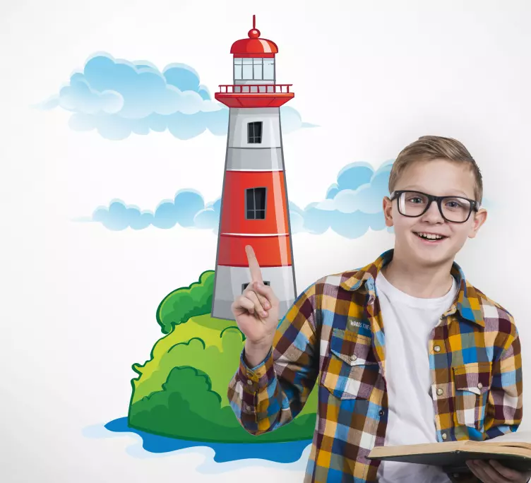 Transforma o ambiente da tua casa com o Autocolante animal farol na ilha, uma peça que combina um design gráfico encantador e vibrante. Este autocolante traz à vida a essência do mar, com uma ilustração náutica que captura a beleza de um farol numa ilha rodeada por nuvens e natureza exuberante. A mistura de elementos marinhos e a palete de cores intensas fazem deste produto uma escolha perfeita para quem ama a serenidade do oceano!