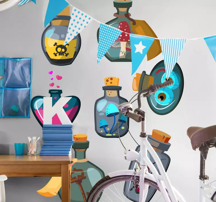 Transforma a tua decoração com o nosso autocolante animal frascos de poções coloridos! Este magnífico design gráfico apresenta garrafas assustadoras e apavorantes que evocam o espírito do Dia das Bruxas. Com ilustrações caprichosas e coloridas, as nossas garrafas de poção trazem um toque de fantasia a qualquer ambiente, criando uma atmosfera mágica e encantadora.