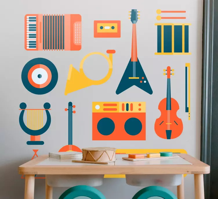Referência: A48268Uma coleção vibrante de instrumentos musicais, incluindo um acordeão, guitarra e piano. Esta disposição animada captura a essência da música, celebrando a criatividade e o ritmo. Perfeito para inspirar uma paixão pela música, este design convida energia e diversão para qualquer espaço.