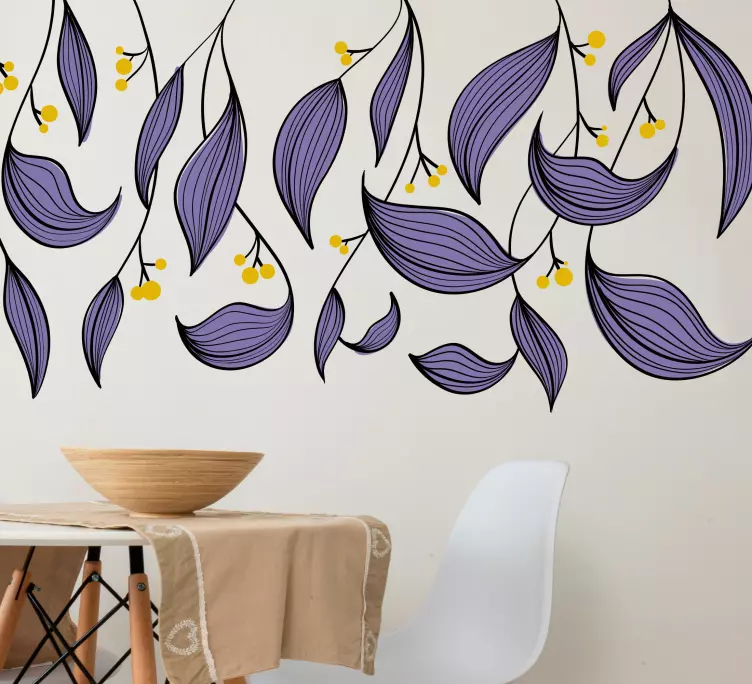Referência: A48215Folhas roxas elegantes adornadas com acentos amarelos criam um arranjo sofisticado. A intrincada interligação das folhas transmite uma vibração fresca e viva, tornando-se uma escolha perfeita para embelezar os espaços de convivência. Este design adiciona um toque de natureza sem sobrecarregar o ambiente.