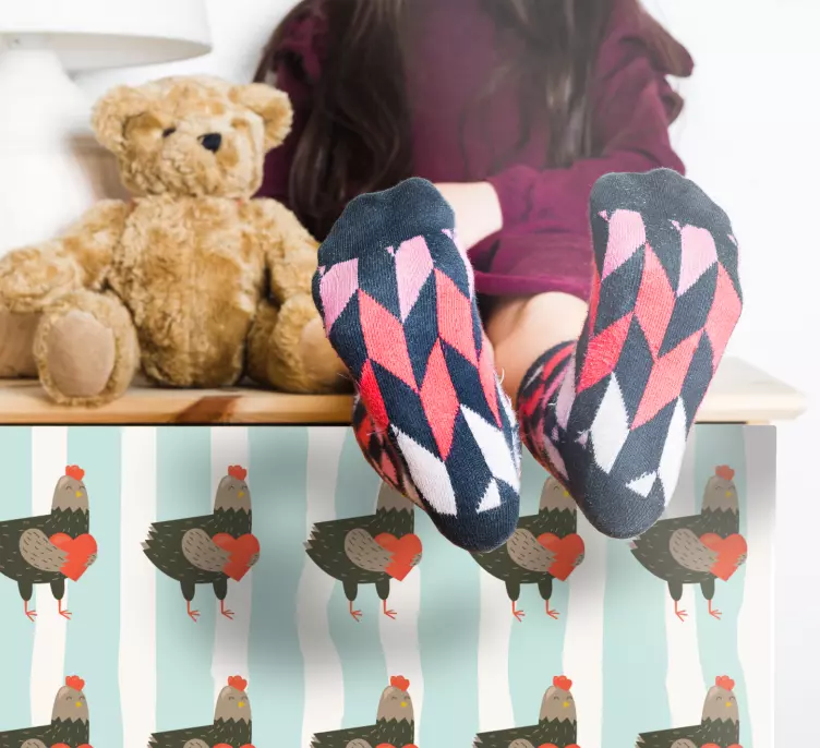 O Autocolante animal padrão de galinha charmosa é uma peça única que traz o encanto da vida na fazenda para dentro da tua casa! Com seu design gráfico vibrante, que inclui galo, galos, corações e listras, este autocolante é ideal para quem ama um toque fofo e colorido no mobiliário. A combinação de animais e elementos da fazenda transforma qualquer ambiente, tornando-o mais alegre e acolhedor!