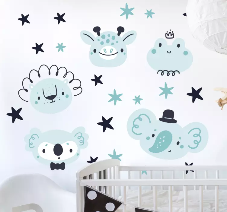 Este autocolante animal rostos de animais adoráveis é a escolha perfeita para quem busca um design gráfico que une o estilo nórdico com a fofura dos animais. Com suas cores azul vibrantes e motivos de estrelas, este produto é ideal para transformar a decoração de qualquer espaço infantil. O desenho animado traz um toque brincalhão e colorido, encantando crianças e adultos!