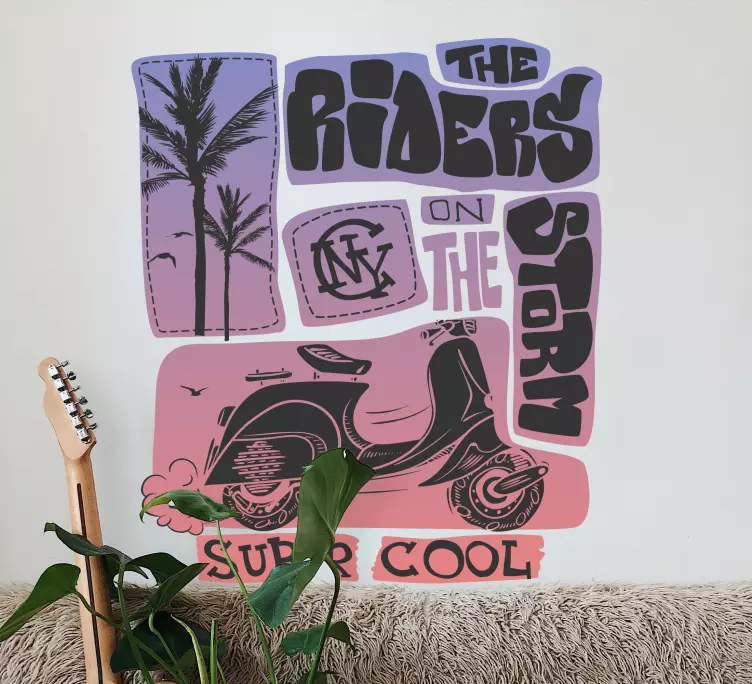 Descobre o nosso Autocolante animal scooters e palmeiras, que traz um design gráfico vibrante e cheio de estilo! Com elementos que remetem à lambreta, ao texto divertido e às Vibes do verão, este autocolante é a combinação perfeita de música e transporte, pronto para dar um toque especial a qualquer espaço!