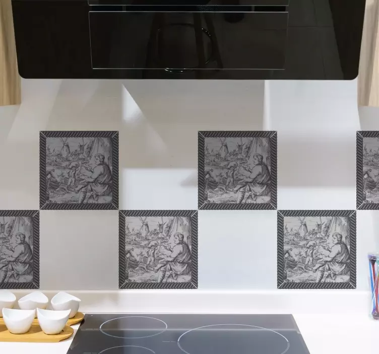 Descubra o nosso Autocolante azulejos cenas históricas, um produto que combina arte e cultura em um design impressionante! Com um estilo que retrata homens trabalhando em moinhos, telhas e paisagens históricas em preto e branco, este autocolante traz um toque de artesanato e sofisticação para qualquer ambiente. Seu visual artístico transforma paredes comuns em verdadeiras obras de arte!