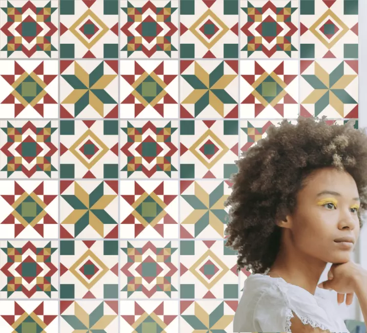 Descubra a beleza do Autocolante azulejos com motivos geométricos, que traz um design vibrante e contemporâneo para a sua casa! Com estrelas e formas geométricas, este produto é a combinação perfeita de azulejos e telhas de cimento, criando uma simetria colorida que transforma qualquer ambiente. O acabamento acetinado garante uma excelente intensidade de cor, sem reflexos indesejados, permitindo que você desfrute de um visual incrível!