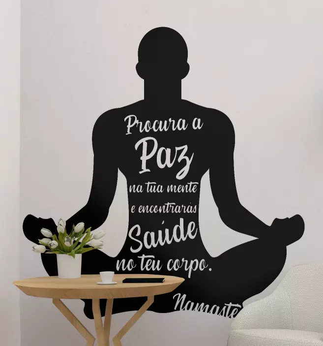Procura a paz na tua mente e encontrarás saúde no teu corpo. Este adesivo decorativo motivacional apresenta uma silhueta de um homem em meditação, ideal para decorar a sua sala de estar ou quarto. Disponível em diversas dimensões para se adequar à superfície escolhida, este vinil decorativo zen é de alta qualidade e não forma rugas ou bolhas. Aplique-o facilmente com a ajuda de uma espátula e limpe-o sempre que necessário com um pano húmido.