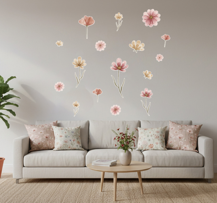 Referência: A53842Transforma o ambiente da tua casa com o Autocolante de parede conjunto de flores silvestres! Este design gráfico é uma verdadeira obra de arte, apresentando um acabamento acetinado que evita reflexos indesejados, enquanto exibe uma intensidade de cor vibrante. Criado para se adaptar a qualquer superfície plana, este autocolante é resistente e lavável, permitindo que o teu espaço tenha um toque natural e alegre!