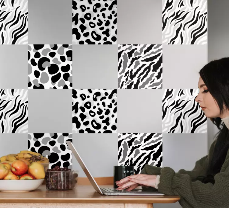 Transforma qualquer espaço com o nosso Autocolante decorativo azulejos com padrão elegante! Com um design gráfico que combina perfeitamente telhas e azulejos, esta peça apresenta uma estampa de animal leopardo em um estilo monocromático. A textura geométrica e moderna traz um toque sofisticado que se adapta a diversos ambientes, elevando a decoração a um novo patamar!