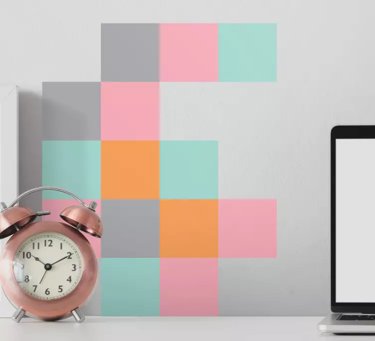 Referência: A53373Uma disposição vibrante de formas geométricas, apresentando cores pastel suaves em uma configuração lúdica. Este design realça qualquer espaço com seu visual atraente, combinando estilo contemporâneo com um toque artístico. A mistura de quadrados em diferentes tons cria uma atmosfera animada, perfeita para adicionar interesse a uma parede.