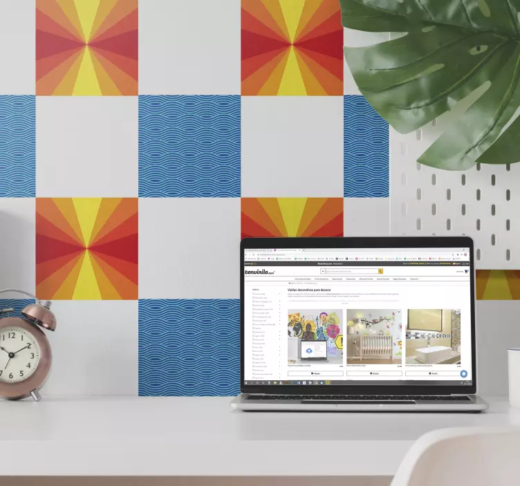 Transforma o teu espaço com o nosso autocolante decorativo composições geométricas vibrantes, um produto que combina design gráfico moderno e vibrante! Com formas quadradas e padrões que evocam um pôr do sol e ondas, este autocolante é perfeito para quem procura uma decoração colorida e refrescante. O seu estilo geométrico traz um toque contemporâneo que revitaliza qualquer ambiente, criando uma atmosfera única e acolhedora.
