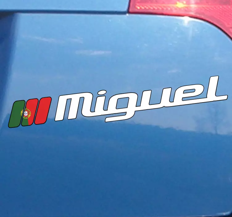personalizado com a bandeira de Portugal! O autocolante perfeito para adicionar ao seu carro, vem com as cores típicas da bandeira de Portugal, verde e vermelho, e o melhor é que pode adicionar o seu nome à direita e fica deslumbrante! O desenho está disponível em diversos tamanhos, então você só precisa escolher o que mais se adapta a você! Caso queira outro tamanho, entre em contato conosco via email e teremos o prazer em atendê-lo.Adicione um toque português ao seu carro