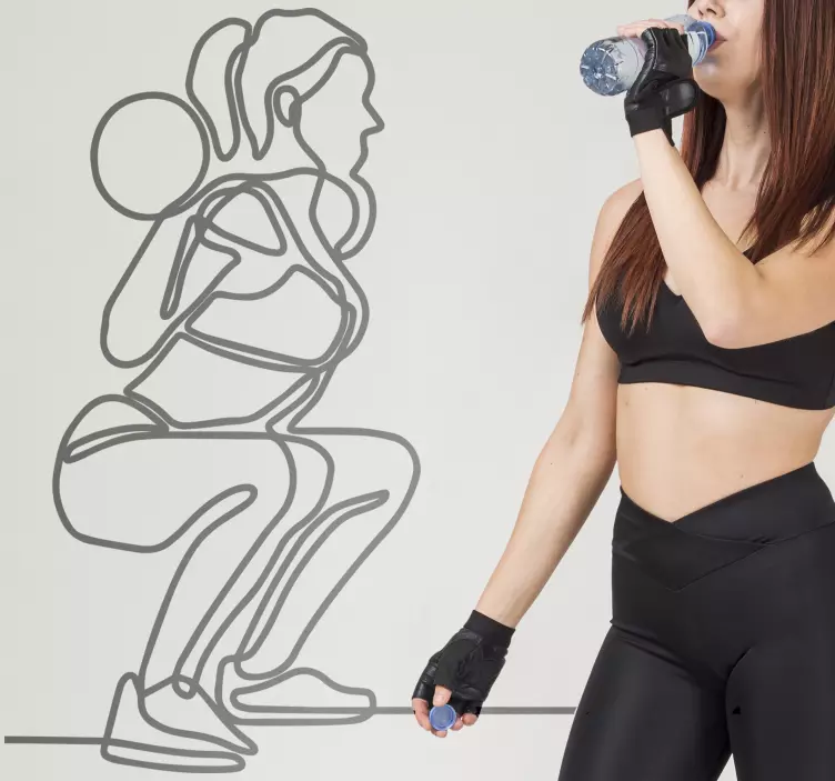 O Autocolante desporto pose dinâmica de fitness é uma peça gráfica que transforma o ambiente da tua academia em um espaço vibrante e inspirador! Com um design linear que representa uma mulher em movimento, desenhando agachamentos e expressando um estilo de vida saudável e ativo, este autocolante é perfeito para motivar qualquer amante de exercícios. A sua estética elegante traz energia ao espaço, tornando cada treino ainda mais prazeroso!
