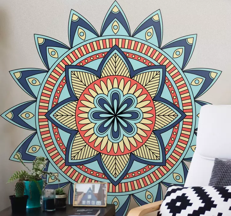 Autocolante geométrico com motivo mandala vibrante
