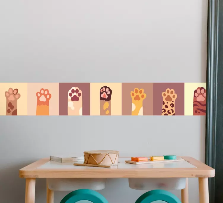 O Autocolante impressões de patas alegres é uma peça gráfica encantadora que traz um toque divertido e colorido à tua decoração! Com um design que combina telhas e azulejos, este autocolante apresenta adoráveis patas de animais em um estilo de desenho animado, perfeito para amantes de gatos e outros bichos de estimação. A sua fronteira bem definida e a palete vibrante tornam-no ideal para padronizar qualquer espaço, trazendo alegria e personalidade ao ambiente.