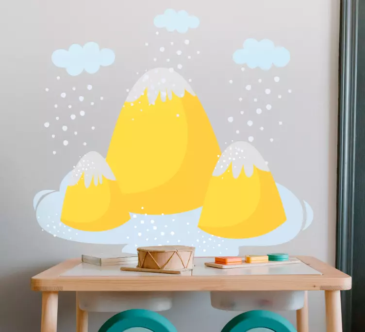 Descobre a beleza da natureza com o Autocolante natureza picos amarelos de montanha, um produto que traz um design gráfico encantador. Este autocolante apresenta uma ilustração vibrante com montanhas cobertas de neve, nuvens flutuantes e um toque caprichoso que ilumina qualquer espaço. As tonalidades amarelas destacam-se, criando uma atmosfera alegre e convidativa que transforma o ambiente.