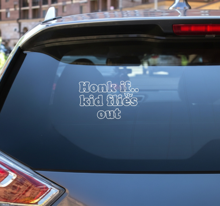 Autocolante para carro "buzine se... criança voa"