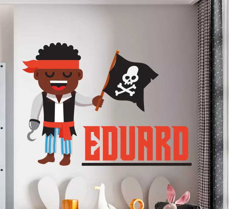 Transforma o quarto do teu pequeno num verdadeiro mundo de aventuras com o Autocolante para crianças aventura do personagem pirata! Este design gráfico encantador apresenta um garoto pirata que promete trazer alegria e diversão ao ambiente. Com a possibilidade de personalização do nome, cada autocolante torna-se único, perfeito para o quarto infantil do teu filho. A ilustração vibrante, que inclui uma bandeira pirata, combina diversão e educação, estimulando a imaginação através de um desenho animado que encanta a todos!
