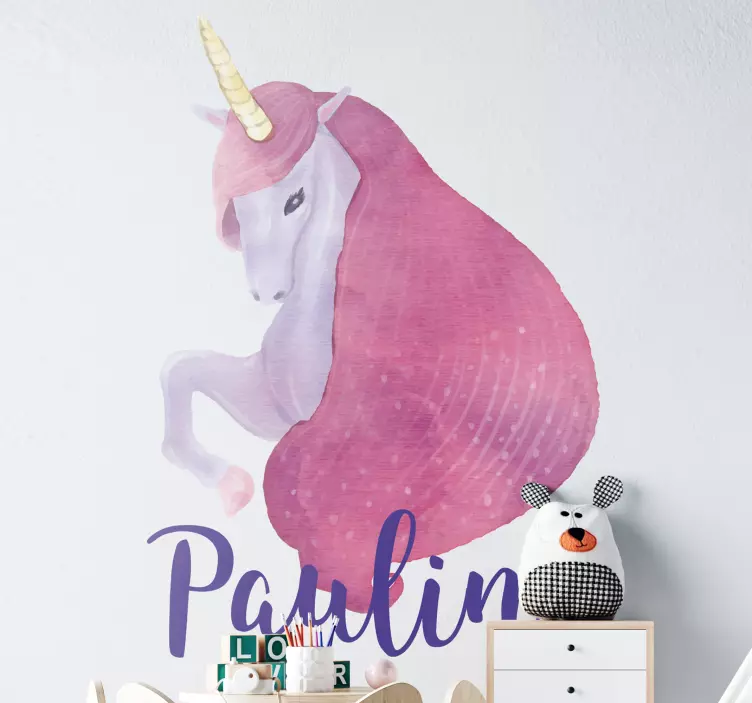 O Autocolante para crianças com arte de unicórnio traz um design gráfico encantador que vai alegrar qualquer ambiente! Com uma linda ilustração de unicórnio em aquarela, este produto é personalizável e pode incluir o nome da criança, tornando-o ainda mais especial. É uma peça colorida e brincalhona, ideal para estimular a imaginação dos pequenos!