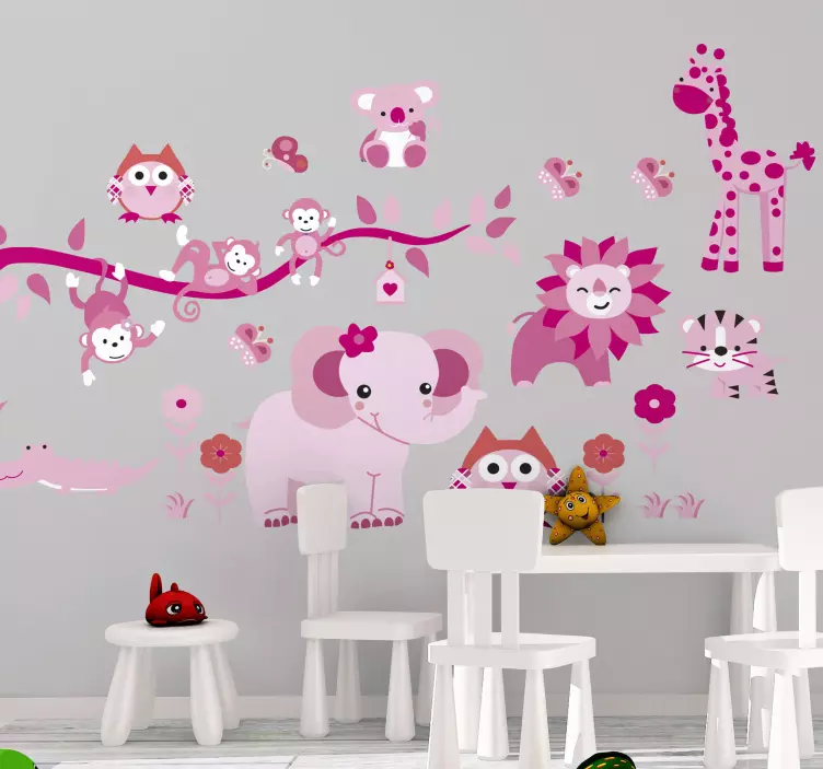 Descobre a alegria da decoração com o nosso Autocolante para crianças compilação de criaturas adoráveis! Este design gráfico vibrante é uma explosão de cor de rosa e ilustrações de animais divertidos que capturam a essência da selva em um estilo de desenho animado. Com um toque selvagem e brincalhão, é a escolha perfeita para dar vida a qualquer espaço infantil, trazendo um ar caprichoso e divertido que as crianças adoram!