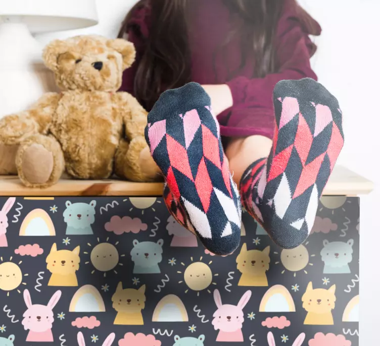 O Autocolante para crianças estilos de criaturas adoráveis é uma explosão de design gráfico que transforma qualquer espaço em um mundo mágico! Com um toque de diversão e brincadeira, este autocolante apresenta adoráveis personagens de animais, cores vibrantes e um arco-íris encantador, ideal para alegrar o mobiliário dos mais pequenos. É caprichoso e perfeito para dar vida ao quarto das crianças, criando um ambiente onde a imaginação pode fluir livremente!