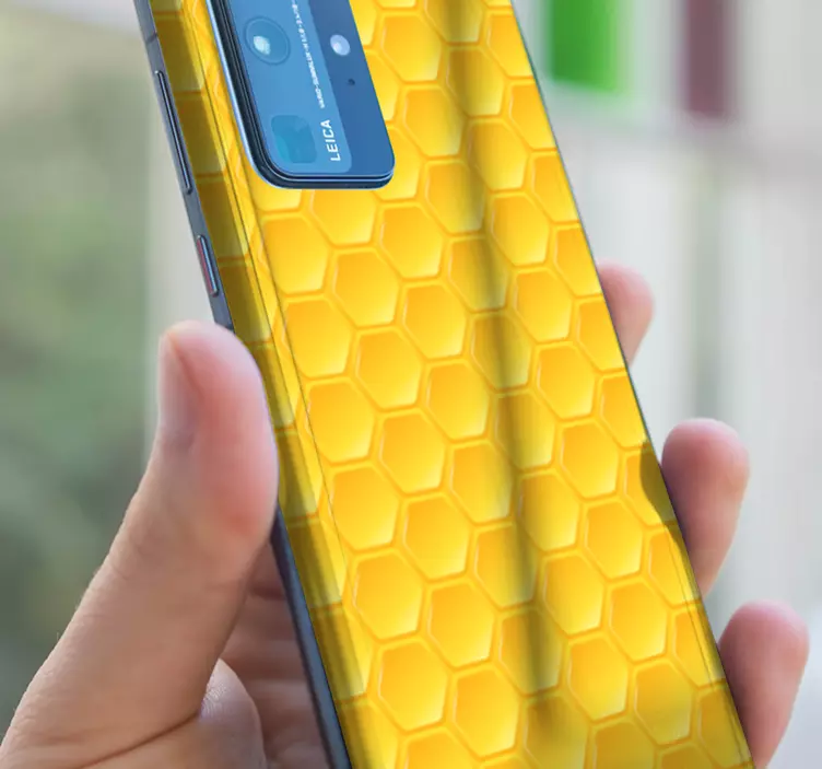 O autocolante para Huawei arranjo em favo de mel apresenta um design gráfico encantador que combina hexágonos em um padrão de colmeia. A sua textura única, com tons de amarelo vibrante, traz um toque moderno e estilizado ao seu telefone. Com um formato hexagonal, este autocolante é perfeito para quem deseja personalizar seu dispositivo de maneira sofisticada e atraente!