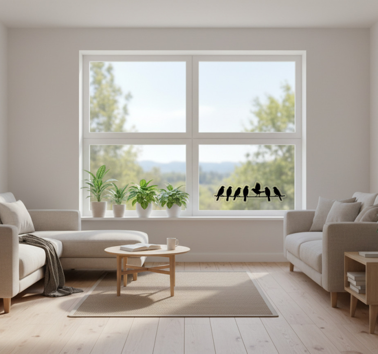 Autocolante para janela pássaros em um varal
