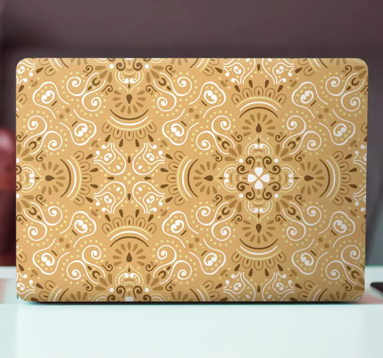 Transforma o teu computador portátil com o Autocolante para laptop padrão ornamentado elegante, que apresenta um design gráfico deslumbrante em bege. Este autocolante é adornado com redemoinhos geométricos que criam um efeito decorativo e ornamentado, tornando-o a escolha perfeita para quem deseja personalizar seu equipamento com estilo e sofisticação!