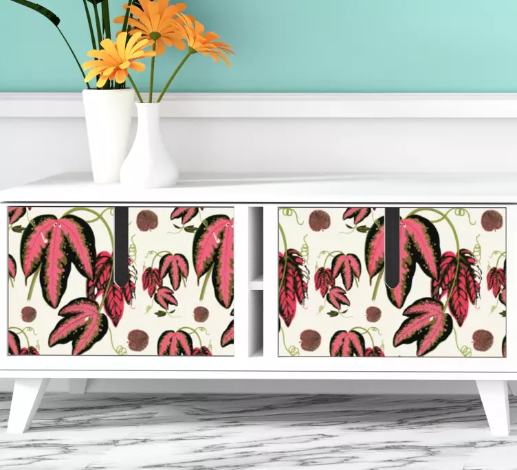 Transforme o teu espaço com o nosso Autocolante para móveis com design de folhas, que apresenta uma ilustração botânica vibrante e colorida! Com um padrão que remete à exuberância das folhas de maranta, este produto é perfeito para padronizar o mobiliário e trazer um toque natural e decorativo ao ambiente. O design gráfico é uma verdadeira celebração da estética tropical, ideal para quem busca um estilo fresco e alegre!