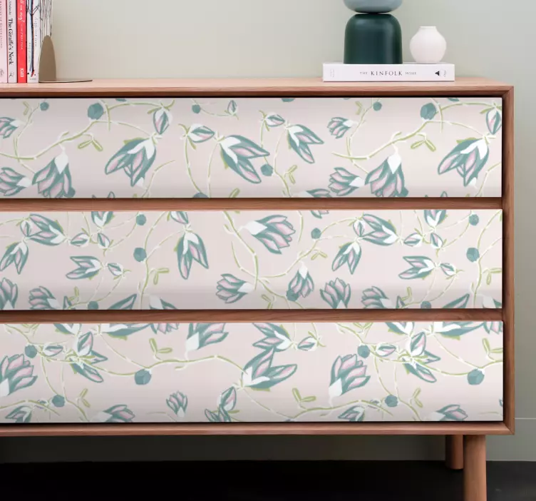 Autocolante para móveis com padrão floral para gavetas