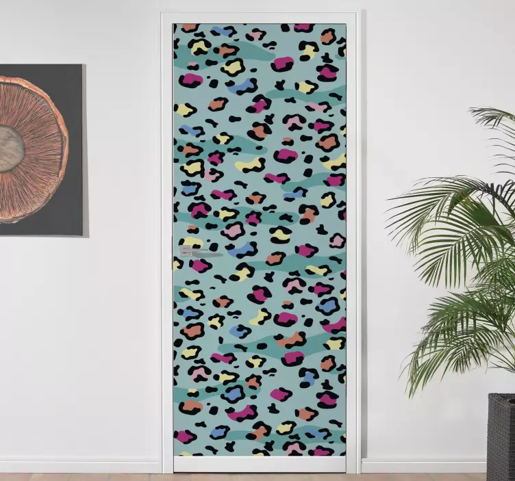 Autocolante para porta estampa de leopardo colorido