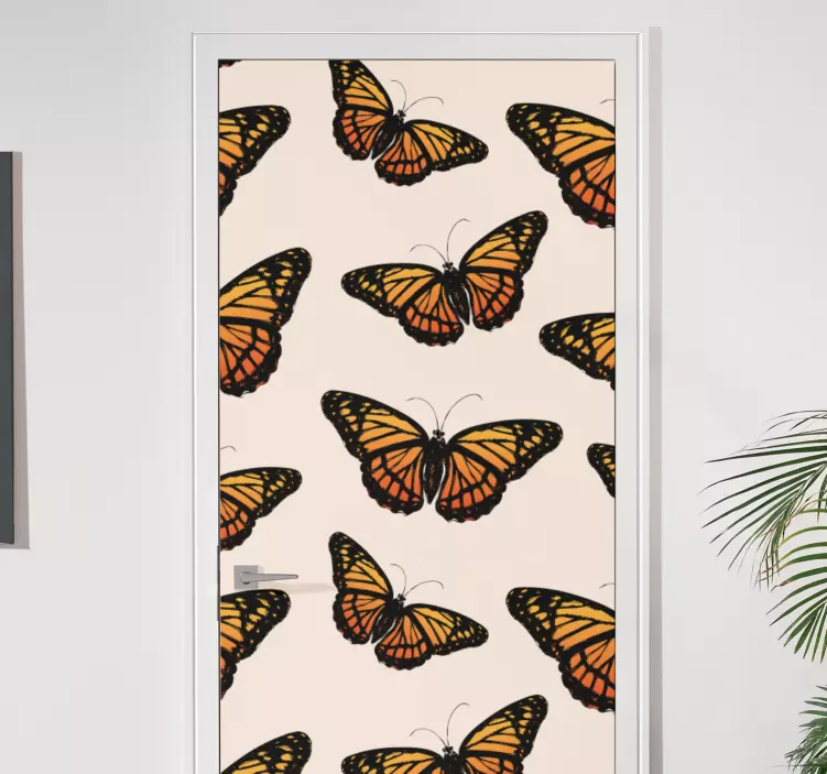O autocolante para porta ilustração de borboleta colorida apresenta um design gráfico encantador que traz a beleza da natureza para o seu espaço. Com uma ilustração vibrante de borboletas, especialmente a borboleta monarca, em tons de laranja, este autocolante é perfeito para dar um toque decorativo e alegre à sua porta. Ele se destaca por padronizar e embelezar ambientes, transformando uma simples porta em uma obra de arte viva!