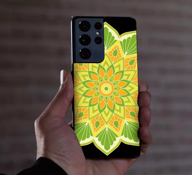 Transforme seu Smartphone com o Autocolante para Samsung elemento mandala floral, uma peça única que traz a harmonia da natureza para o seu dia a dia! Com um design gráfico deslumbrante em verde, amarelo e laranja, este adesivo apresenta uma mandala que simboliza a beleza e a energia da vida. Feito para padronizar e embelezar, ele é a escolha perfeita para quem deseja adicionar um toque especial ao seu celular.