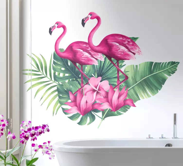 Autocolante pássaro flamingos e folhagens