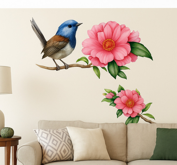 Autocolante sala de estar com gráficos de pássaros vivos