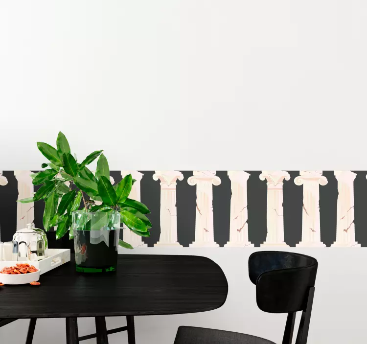 O Friso autocolante design de coluna clássico é uma peça que traz o charme da antiguidade ao teu espaço. Com um design inspirado na estética grega, este autocolante apresenta colunas elegantes que funcionam como uma fronteira sofisticada em qualquer ambiente. O fundo preto proporciona um contraste marcante, enquanto o efeito mármore adiciona um toque de requinte tradicional ao interior. É a escolha perfeita para quem deseja um detalhe gráfico que transforma o ambiente de forma única!