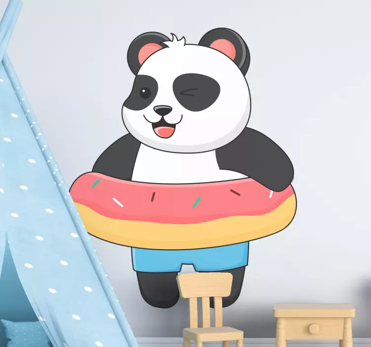 Referência: A25785Decore com estilo com Vinil com animais selvagens Panda cômico em um donut