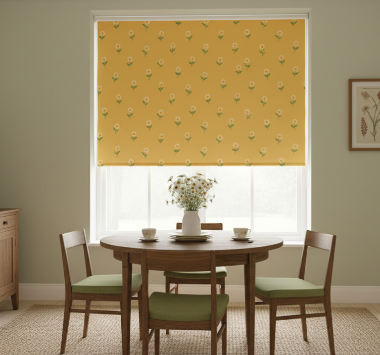 O estore de rolo amarelo é ideal para aqueles que desejam transformar o ambiente do berçário em um espaço acolhedor e alegre. Este estore de rolo amarelo design de berçário margarida 1940 proporciona uma estética encantadora que não só embeleza, mas também oferece funcionalidade. Protege a sala da luz solar direta e proporciona privacidade quando abaixado, criando um refúgio perfeito para os pequenos. Valoriza a decoração do quarto e permite regular a temperatura ambiente, tornando o espaço ainda mais confortável e seguro! É a escolha perfeita para quem busca um toque especial na decoração!
