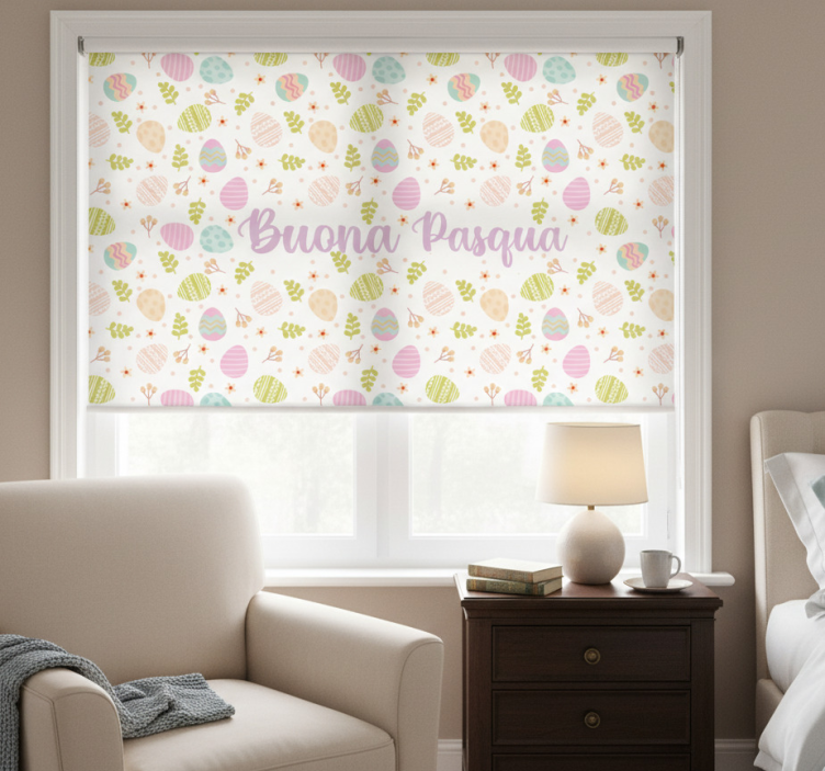 Aplicar o estore de rolo amarelo páscoa feliz italiana é um processo simples e rápido! Com uma montagem em apenas 2 cliques, tu conseguirás transformar o visual da tua janela em poucos minutos. Desfruta da funcionalidade e beleza que este estore traz para a tua casa!