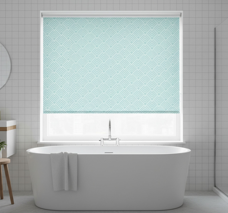 Estore de rolo azul com linhas zigzag azul claro