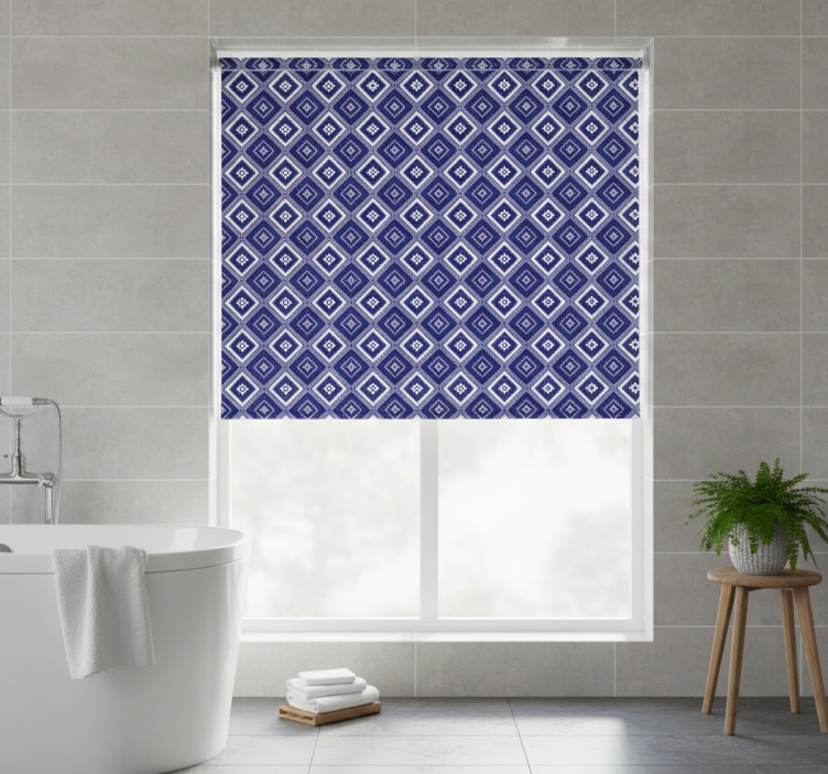 Estore de rolo azul com padrão de diamante azul