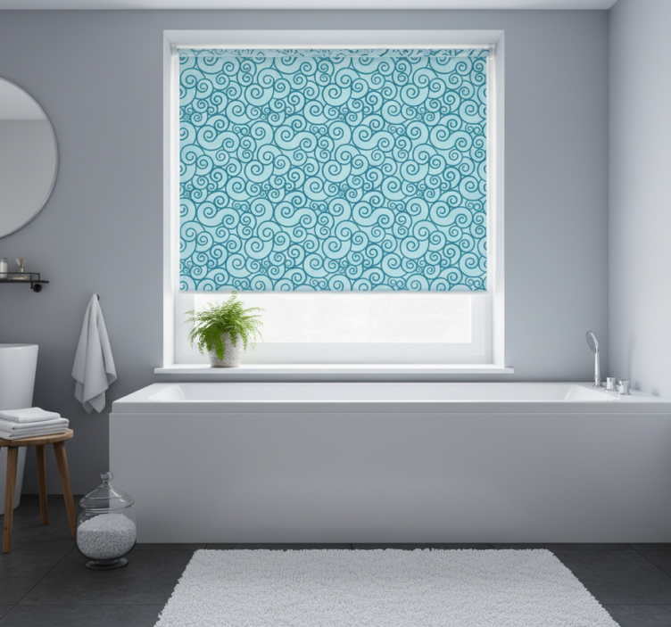 Estore de rolo azul com padrão espiral