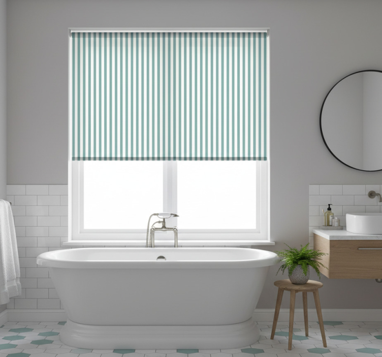 Estore de rolo azul listrado verde-água