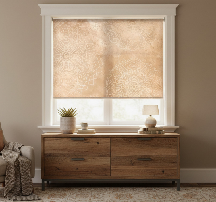 Referência: E8774Apresentamos o estore de rolo bege com mandalas vintage, uma peça de design gráfico que transforma qualquer ambiente! Com suas delicadas mandalas, esta persiana combina elegância e modernidade, trazendo um toque artístico e acolhedor para a tua casa. Fácil de montar e desmontar em apenas 2 cliques, é a solução perfeita para quem procura praticidade sem abrir mão da estética. Além disso, ela proporciona privacidade e controla a luz solar direta, mantendo a temperatura ambiente agradável!